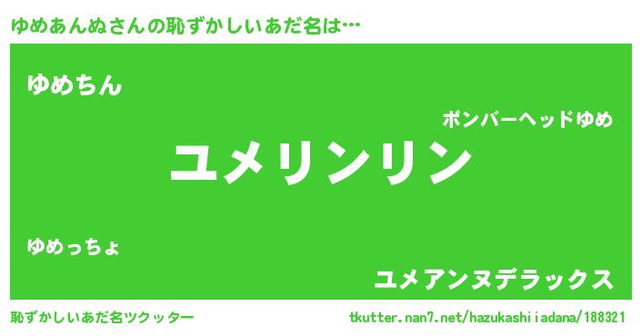 | 意味不明あだ名 | 『住所不定無職ゆめあんぬ(84歳)』 |