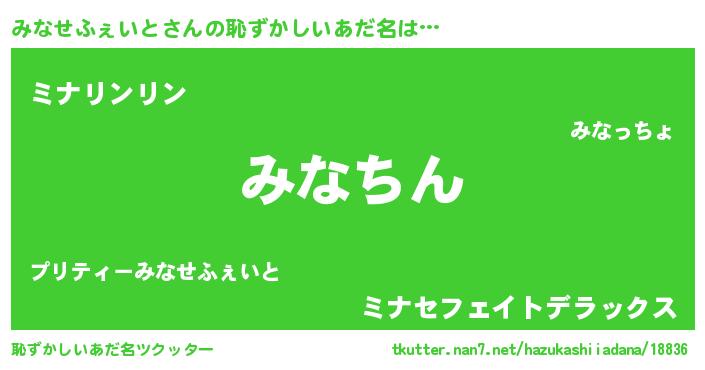 | ヘコむあだ名 | 『みなせふぇいと(笑)』『みな太郎』 |