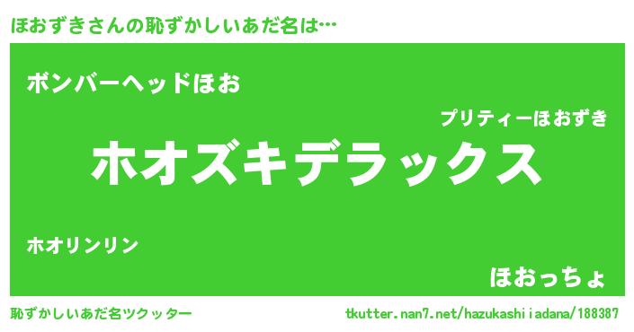 | 男性向けラノベタイトル風あだ名 | 『Re:ほおずきから始める異世界生活』 |