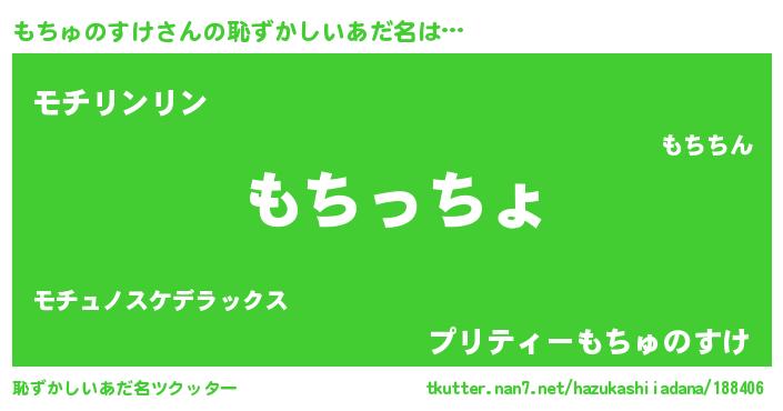 | 意味不明あだ名 | 『住所不定無職もちゅのすけ(41歳)』 |