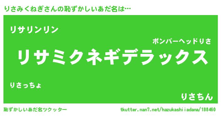 | 男性向けラノベタイトル風あだ名 | 『この素晴らしい世界にりさみくねぎを!』 |