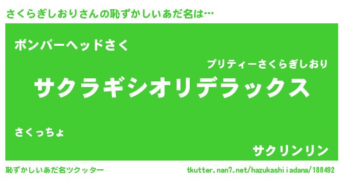 | 料理風あだ名 | 『ヘルシー!さくらぎしおりのピリ辛酒蒸し!』 |