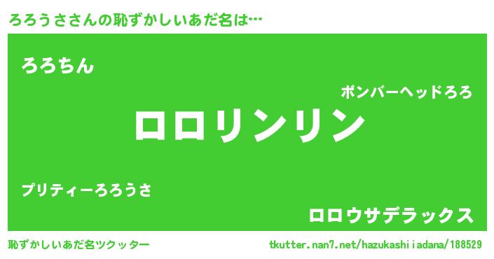 | 意味不明あだ名 | 『とにかく怪しいろろうさ』 |