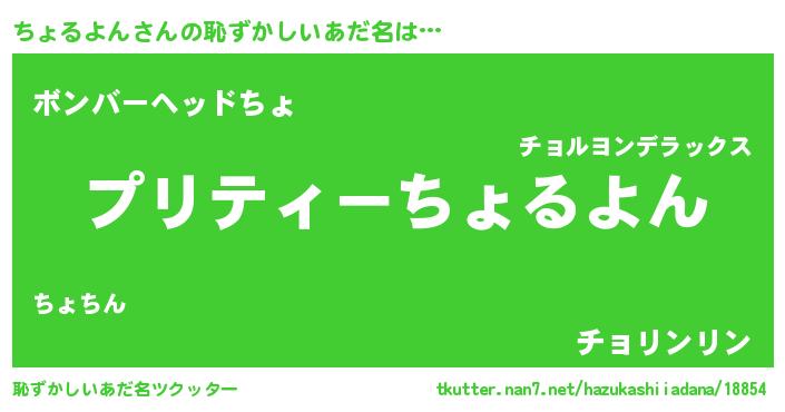 | 意味不明あだ名 | 『ペロリンちょるよん』『自称ちょるよん』 |
