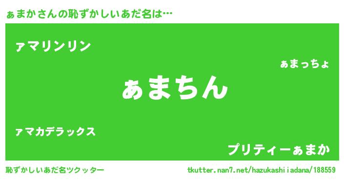 | 男性向けラノベタイトル風あだ名 | 『ぁまかという概念が存在しない退屈な世界 』 |