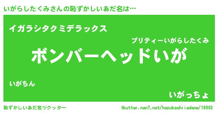 | 意味不明あだ名 | 『眠気覚ましガムいがらしたくみ味』 |
