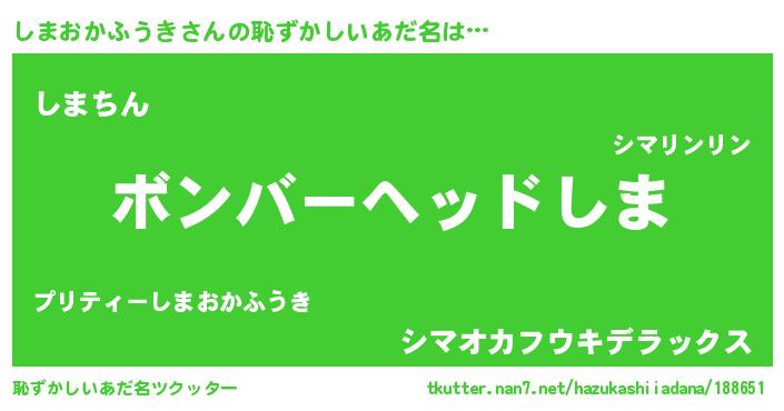 | ヘコむあだ名 | 『しまおかふうき(笑)』『しまぷりん』 |