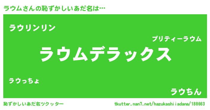 | 意味不明あだ名 | 『ヨモギ科ラウム属』『自称ラウム』 |