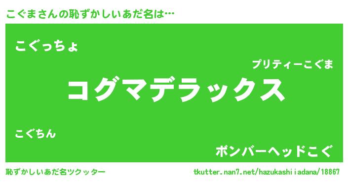 意味不明あだ名 | 『自称こぐま』『こぐまフォーエバー』 |