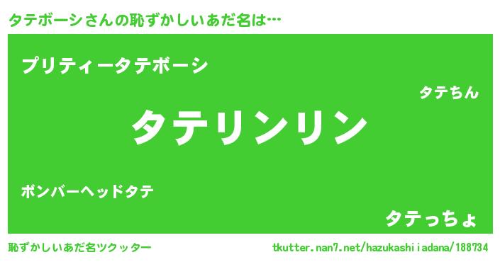 | 男性向けラノベタイトル風あだ名 | 『タテボーシの嫁は女の子じゃないと思った?』 |