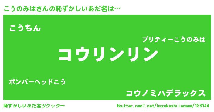 | 意味不明あだ名 | 『とにかく怪しいこうのみは』 |