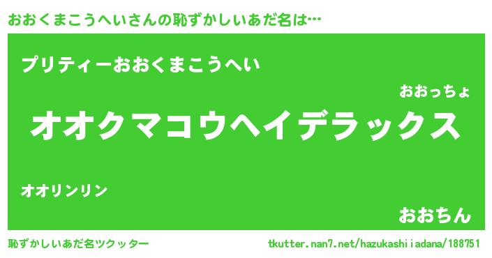 | 意味不明あだ名 | 『自称おおくまこうへい』 |