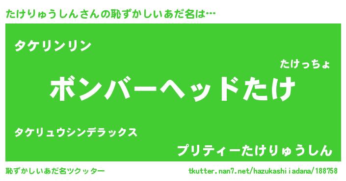 | 男性向けラノベタイトル風あだ名 | 『転生したらたけりゅうしんだった件』 |