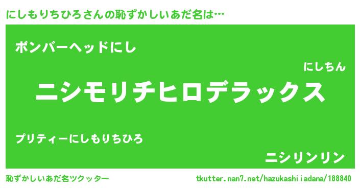 | ヘコむあだ名 | 『にしっぺ』『にしもりちひろ(笑)』 |