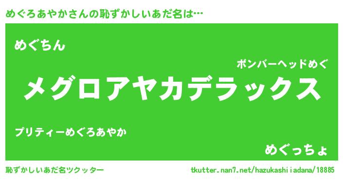 | ヘコむあだ名 | 『めぐろあやか(笑)』『牛乳』 |