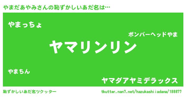 | 意味不明あだ名 | 『とにかく怪しいやまだあやみ』 |