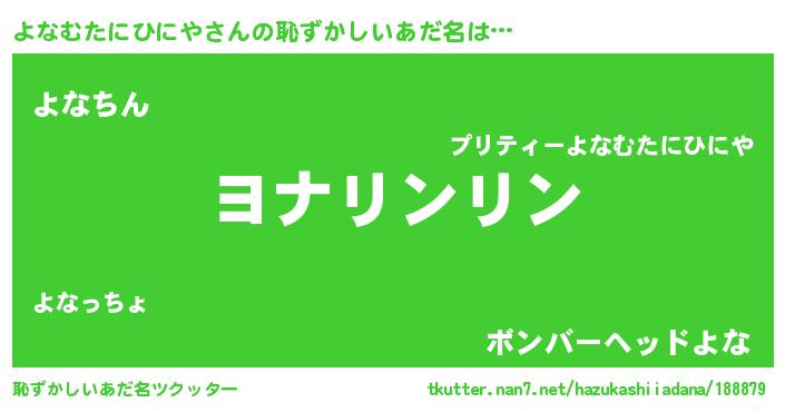 | ポケモン風あだ名 | 『ヨナゴンZ』『ヒヨナムタニヒニヤ』 |
