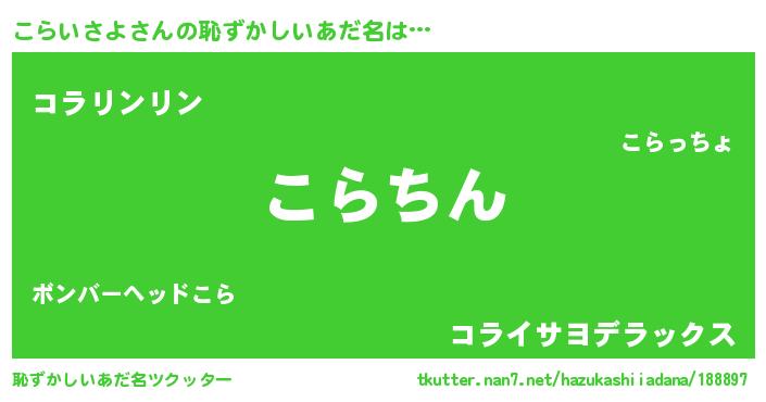 | ヘコむあだ名 | 『こらいさよ(苦笑)』『こらを』 |