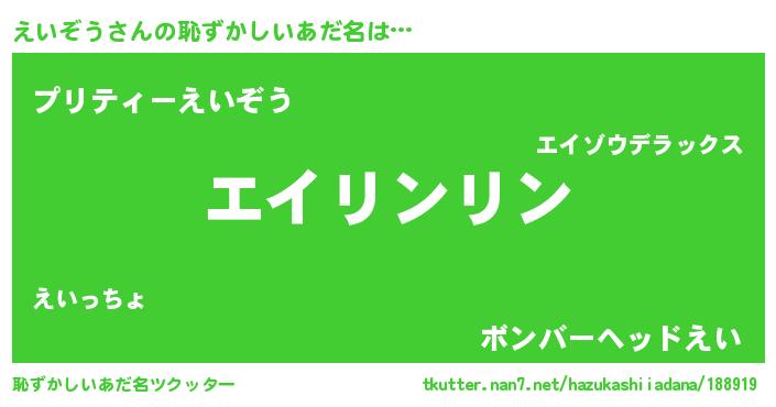 | 男性向けラノベタイトル風あだ名 | 『えいぞうの嫁は女の子じゃないと思った?』 |