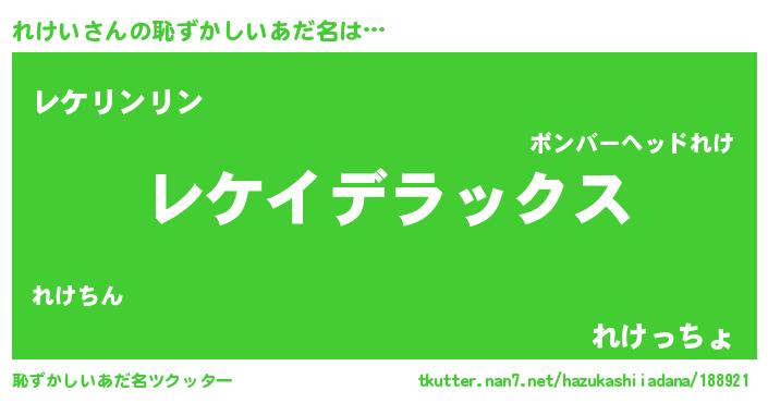 | 欧米人風あだ名 | 『ケンブリッジれけい』『ウサインれけい』 |