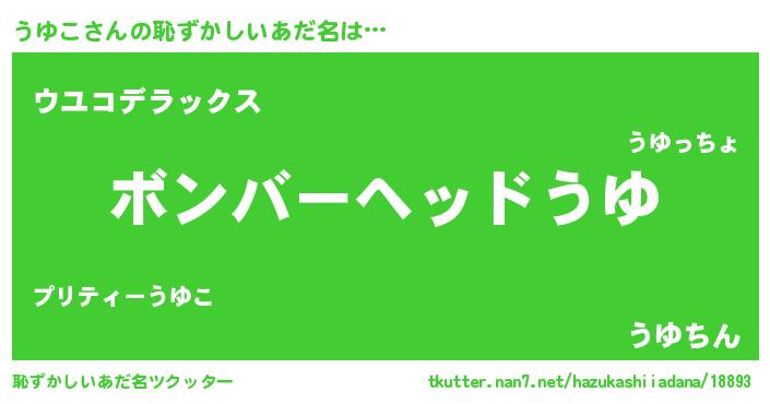 | ヘコむあだ名 | 『うゆこ(笑)』『なまこ酢』『うゆを』 |