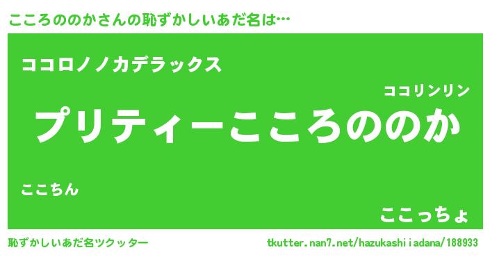 | ツイッター | こころののかさんのツイッターID『namakemono_kun』 |