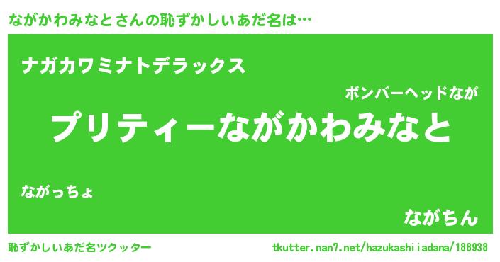 | 男性向けラノベタイトル風あだ名 | 『ながかわみなとに滅ぼされるだけの簡単なお仕事です』 |