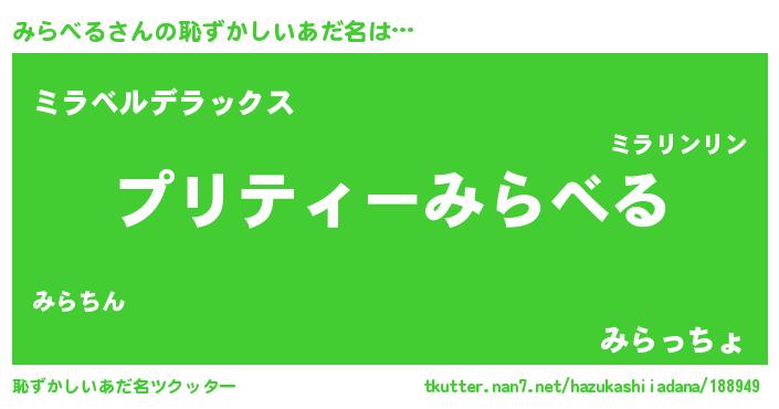| 欧米人風あだ名 | 『マイケルみらべる』『ウサインみらべる』 |