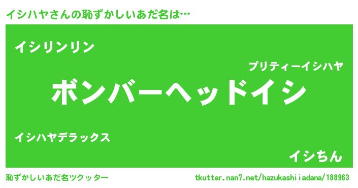 | ヒーロー風カッコイイあだ名 | 『仮面イシダー』『慈愛の使者イシハヤ』 |