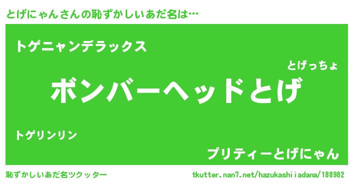 | 男性向けラノベタイトル風あだ名 | 『トゲニャンスレイヤー』 |