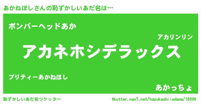 | 男性向けラノベタイトル風あだ名 | 『転生したらあかねほしだった件』 |