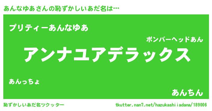 | ヘコむあだ名 | 『あんもー』『あんなゆあ(笑)』 |