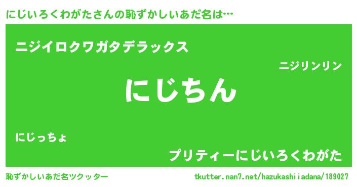 | ヘコむあだ名 | 『にじいろくわがた(笑)』『にじにー』 |