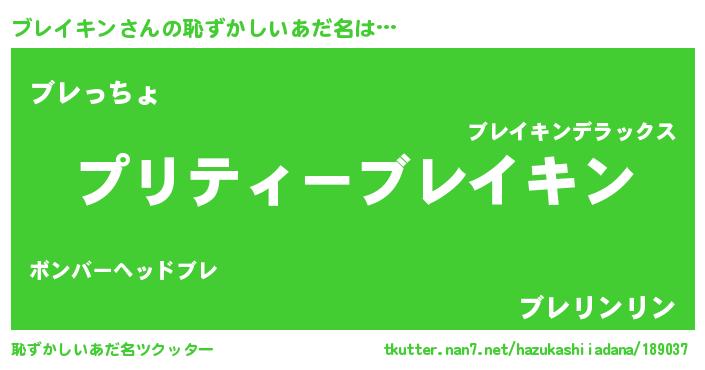 | 男性向けラノベタイトル風あだ名 | 『ブレイキンの憂鬱』 |
