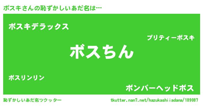 | 男性向けラノベタイトル風あだ名 | 『ボスキという概念が存在しない退屈な世界 』 |