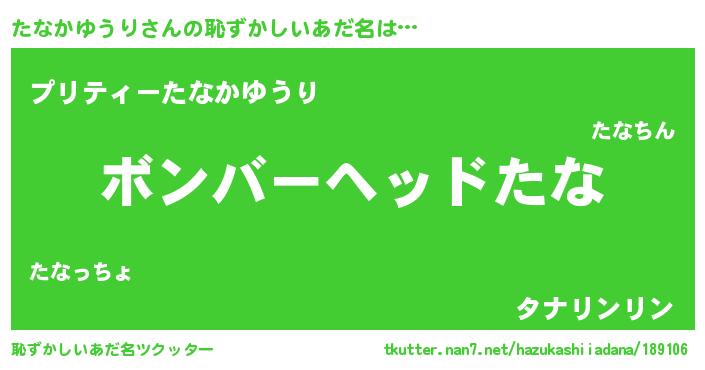 | ヘコむあだ名 | 『たなにゅー』『たな太郎』『豆乳』 |