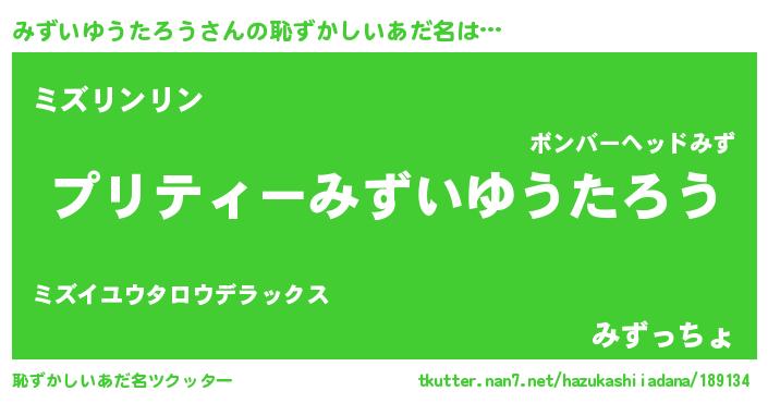 | 意味不明あだ名 | 『めかぶ科みずいゆうたろう属』 |
