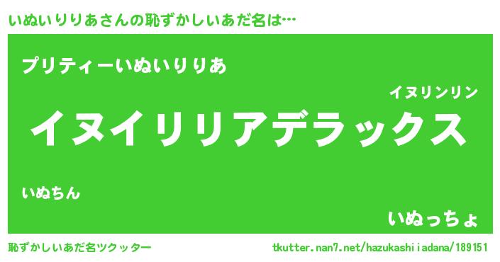 | 意味不明あだ名 | 『自称いぬいりりあ』 |