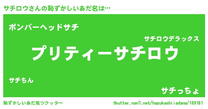 | 意味不明あだ名 | 『ペロリンサチロウ』『自称サチロウ』 |