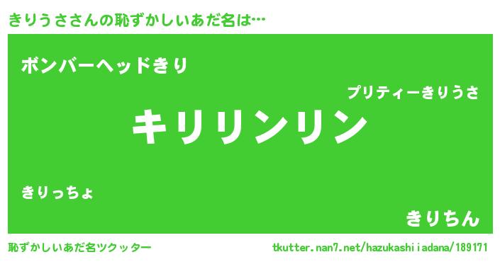 | ヒーロー風カッコイイあだ名 | 『銀牙騎士キリ』『正義の使者きりうさ』 |
