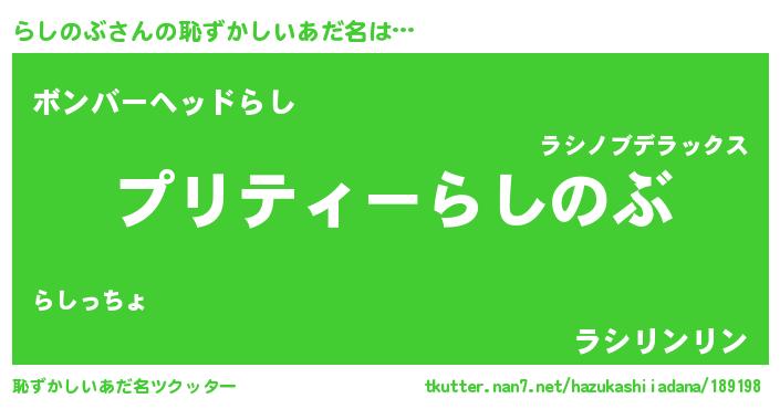 | 意味不明あだ名 | 『住所不定無職らしのぶ(59歳)』 |