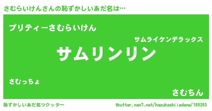 | 意味不明あだ名 | 『とにかく怪しいさむらいけん』 |