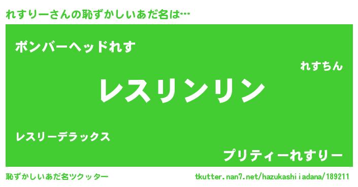 | 意味不明あだ名 | 『ニラ科れすりー属』『ペロリンれすりー』 |