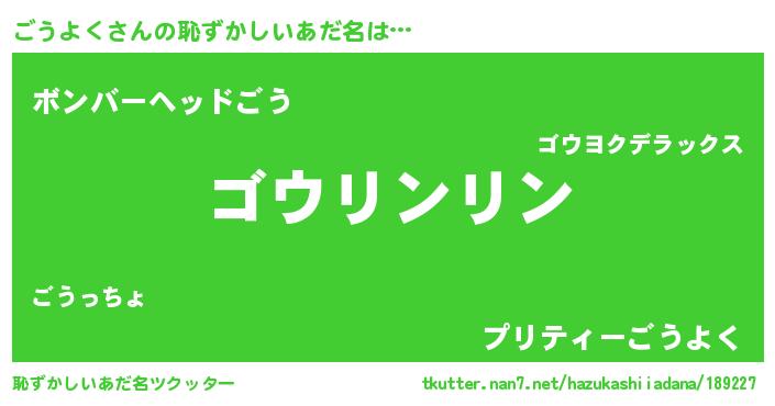 | 胡散臭い通販商品みたいなあだ名 | 『信頼と実績のサプリメント…その名も「ごうよく」』 |
