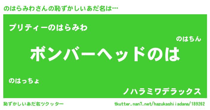 | ヒーロー風カッコイイあだ名 | 『慈愛の使者のはらみわ』『仮面ノハダー』 |