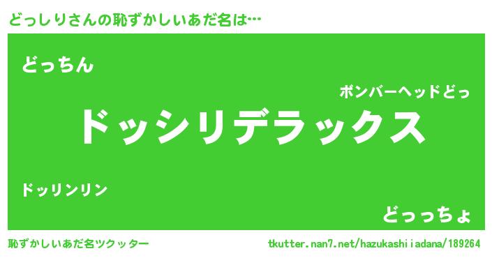 | 意味不明あだ名 | 『自称どっしり』『めかぶ科どっしり属』 |