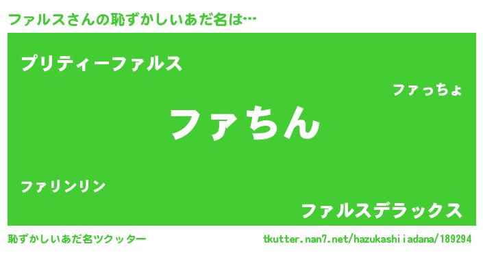 | 男性向けラノベタイトル風あだ名 | 『ファルスに滅ぼされるだけの簡単なお仕事です』 |