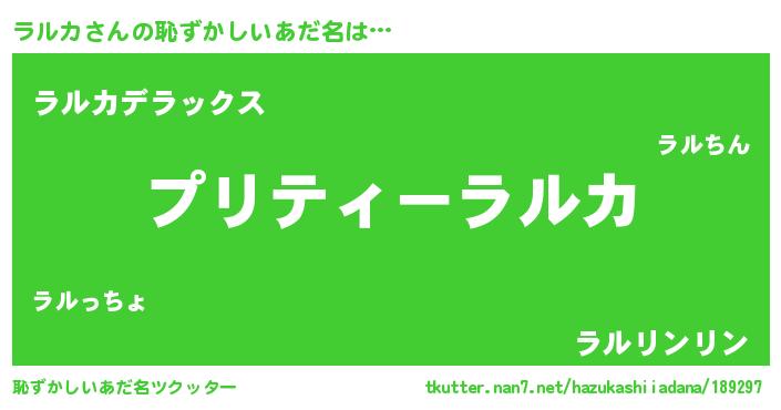 | ヘコむあだ名 | 『ラルにゅー』『ラルお』『つくし』 |