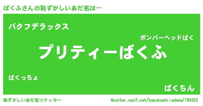 | ヘコむあだ名 | 『ばくもー』『ばくふ(笑)』『ばくお』 |