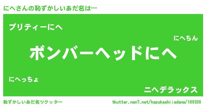 | ヘコむあだ名 | 『にへもー』『にへ(笑)』『豆乳』 |